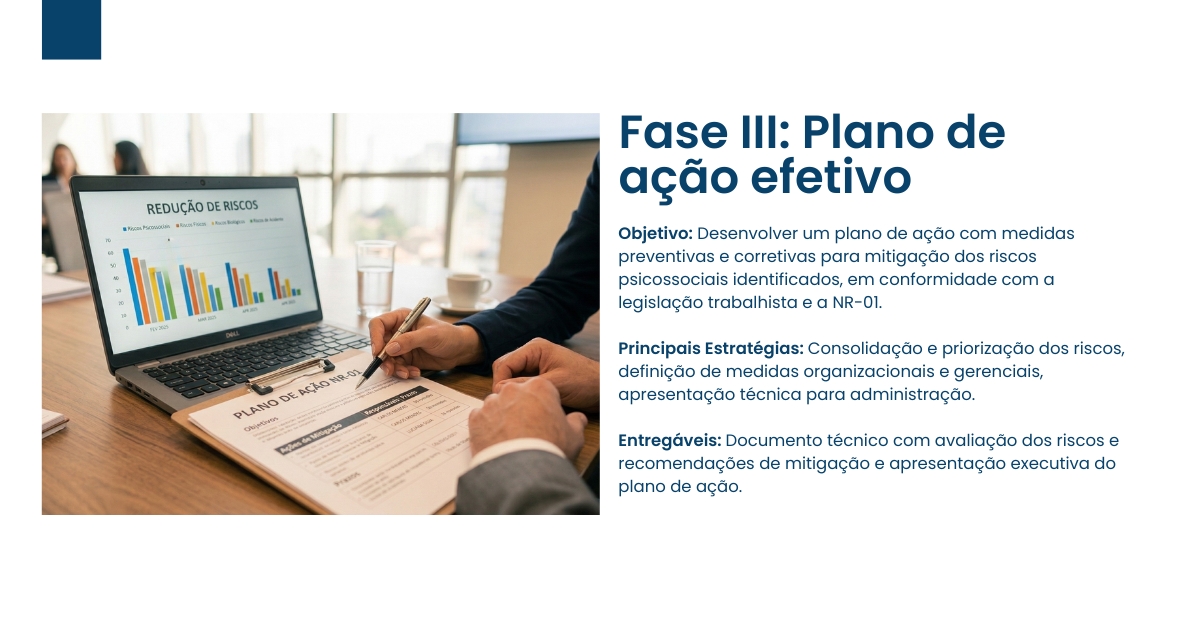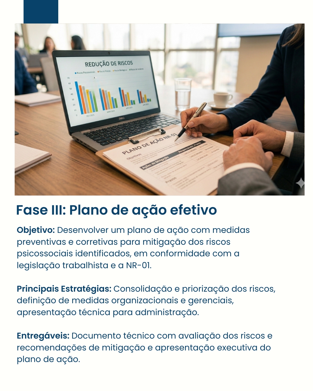 A atuação conjunta contempla a elaboração de relatórios técnicos, a análise estruturada de riscos, a definição de medidas de mitigação de passivos e o apoio à implementação de boas práticas organizacionais, contribuindo para ambientes de trabalho mais seguros, equilibrados e alinhados à legislação vigente.
