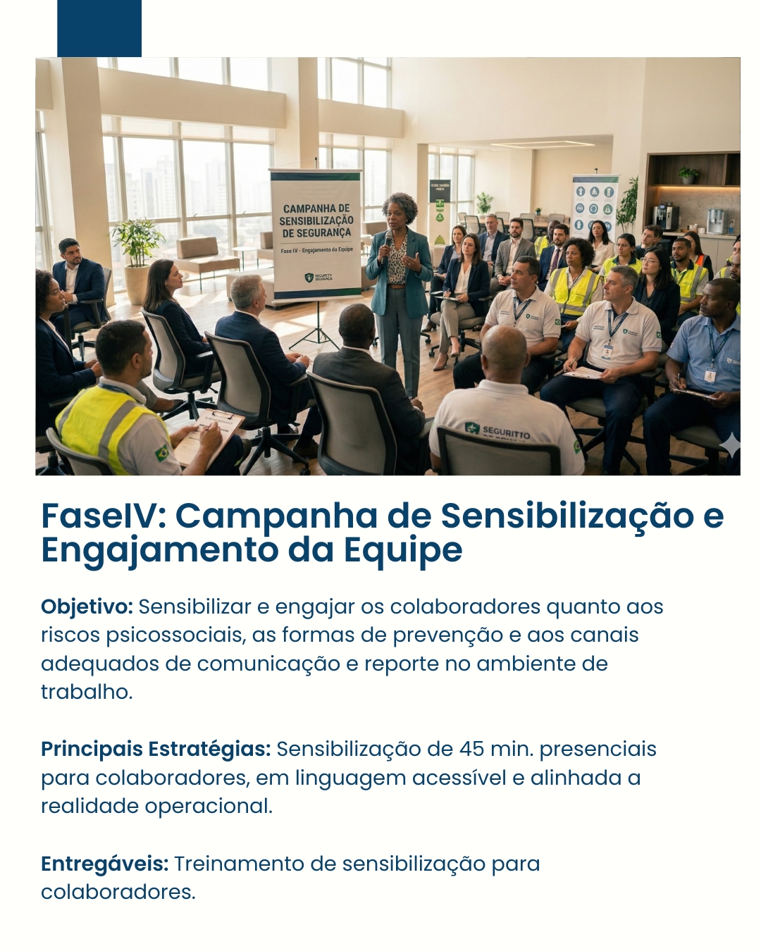 Capacitação e conscientização de lideranças e colaboradores em temas relacionados a riscos psicossociais, segurança da informação e governança.